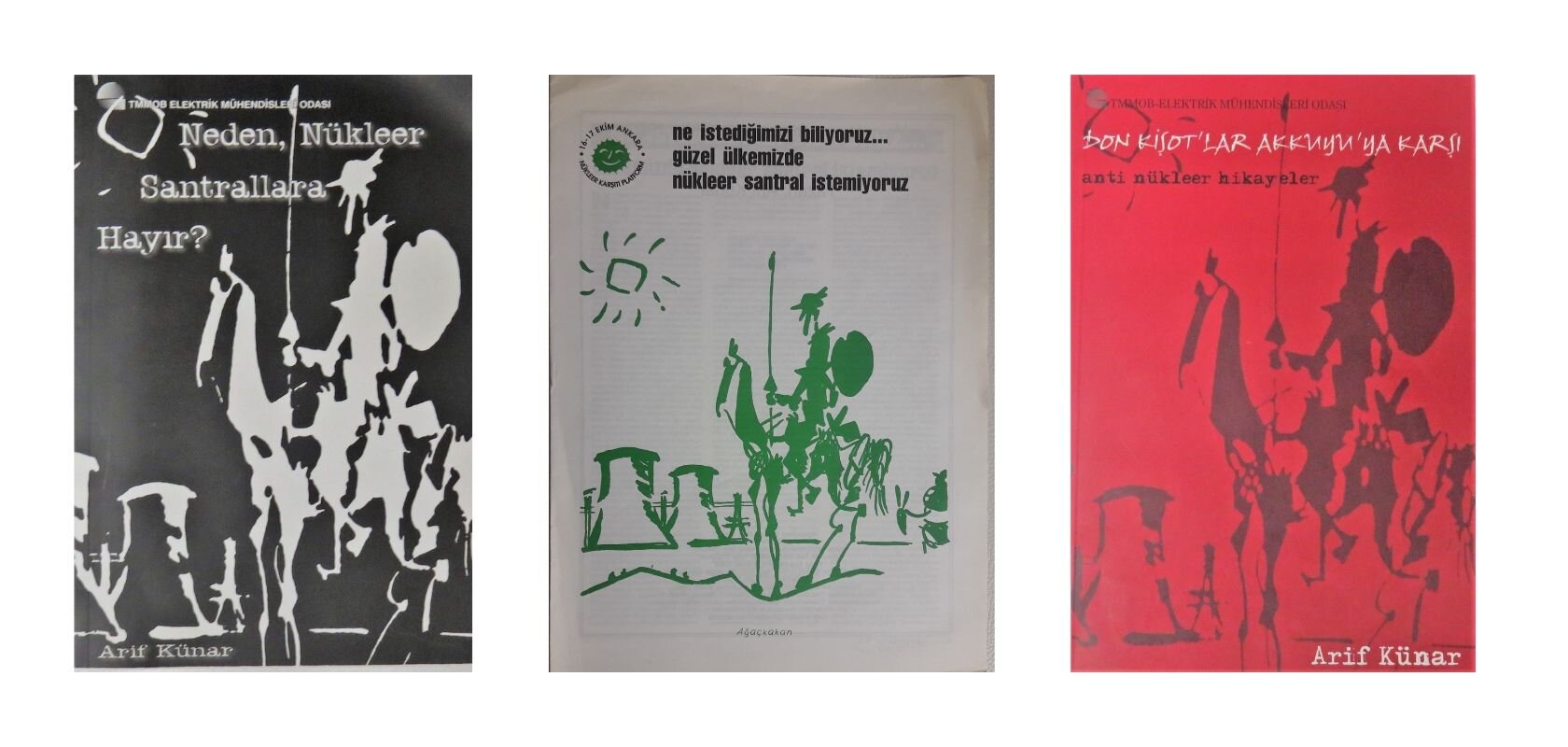 2002 ve 2006 yıllarında Elektrik Mühendisleri Odası için hazırladığımız "Neden, Nükleer Santrallara Hayır?" ve “Don Kişot’lar Akkuyu’ya Karşı" isimli mücadelemizin tarihini anlatan iki kitabımızın da kapağı, sevgili Gülnur Özdağlar tarafından Picasso’nun meşhur Don Kişot tablosundaki yel değirmenleri yerine nükleer santral bacası ile tasarlanmıştı.