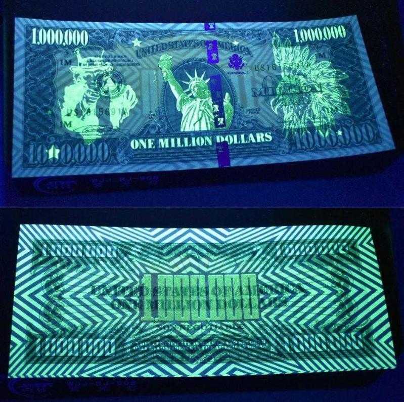 ÖZEL KOLEKSİYON ******** 1.000.000 Dolar ******* Farklı seri numarası gönderilecektir. 160x79mm Ebatındadır. / Neon Fosforlu Hatıra Para, Koleksiyonerler için Mor ışık altında harika özel desenler belirir. / Çok farklı bir para.Sınırlı sayıda. Not:Gerçek para değildir.Özel desenleri görmeniz için sahte para makinası-mor ışık gereklidir.