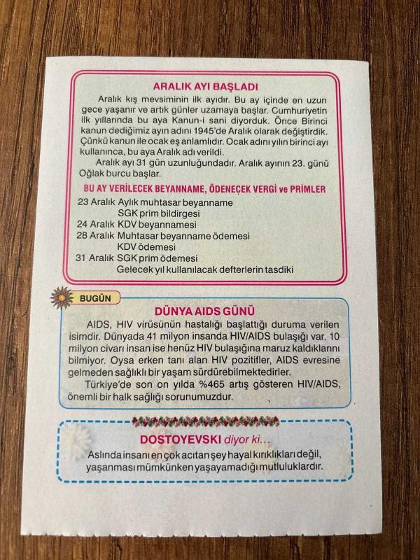 Orijinal takvim yaprağıdır. -