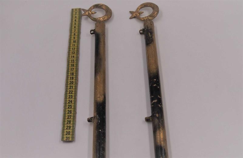 1 Adet Flama- Siyah Ay yıldız Başlıklı Koruma Demiri - Eskort Demir Türk Bayrağı başlıklı antika/koleksiyon objesinin menşei belirtilmemiştir. Objenin ait olduğu dönem bilinmeketedir.