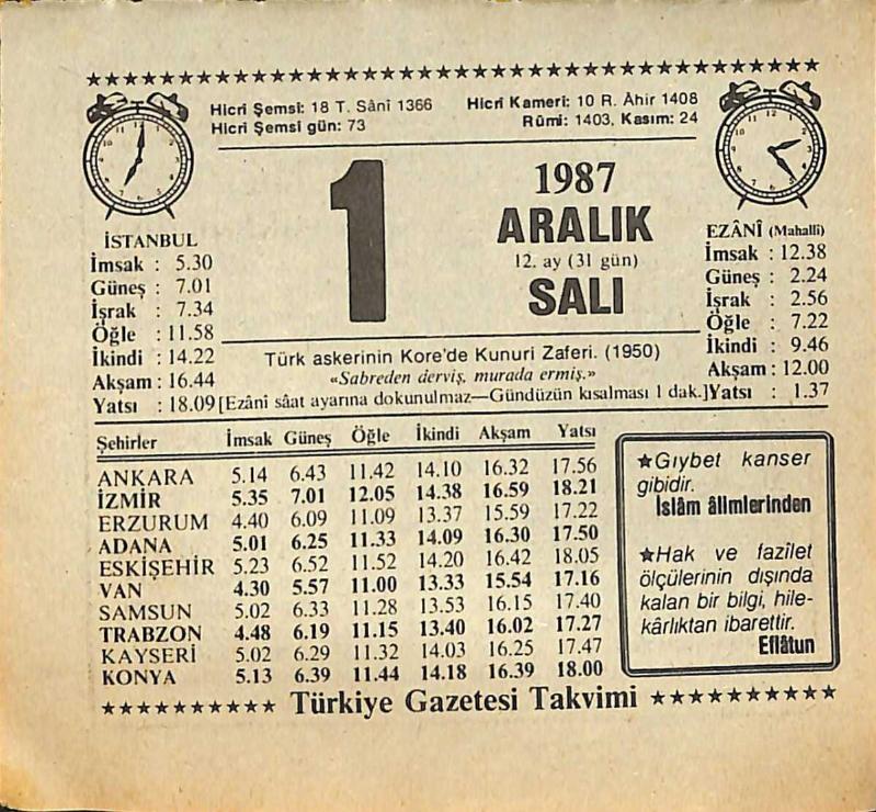1 Aralık 1987 Takvim Yaprağı - Doğum Günü Hediyesi EFMN15010, en son 20 gün önce güncellenmiştir.