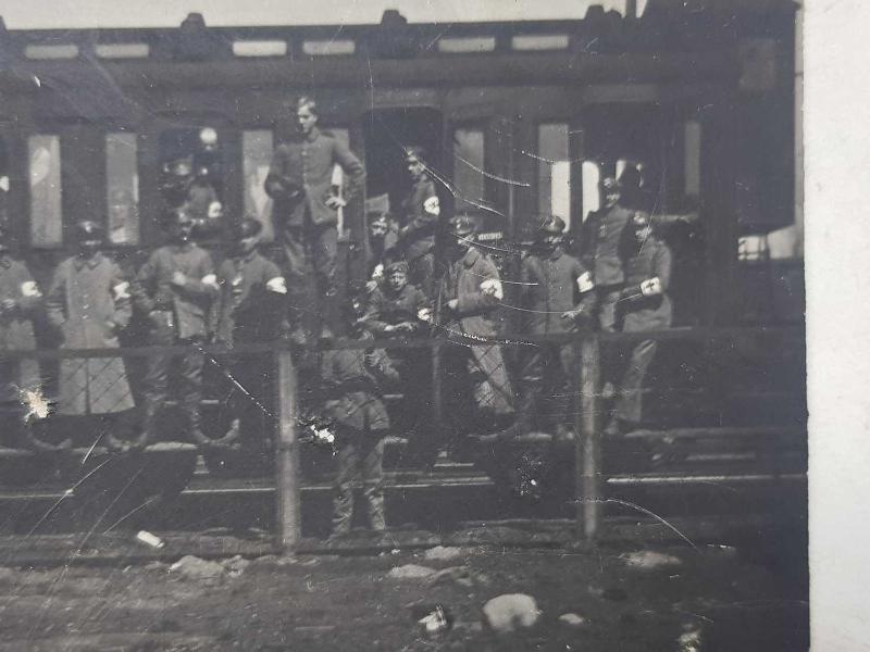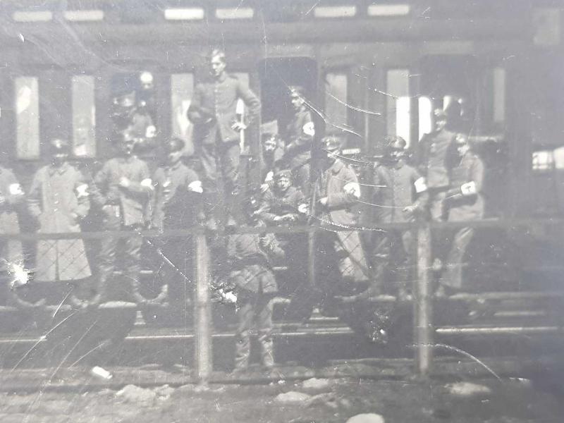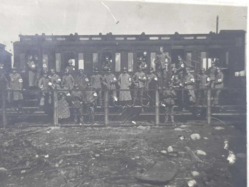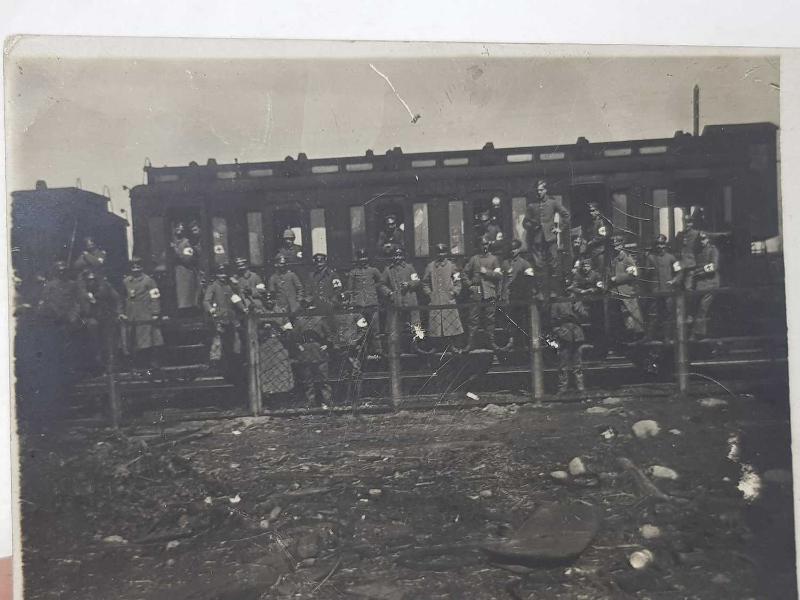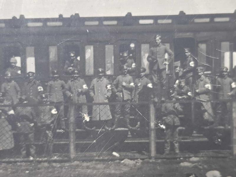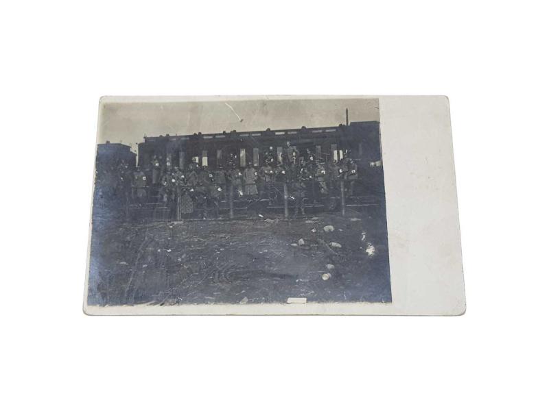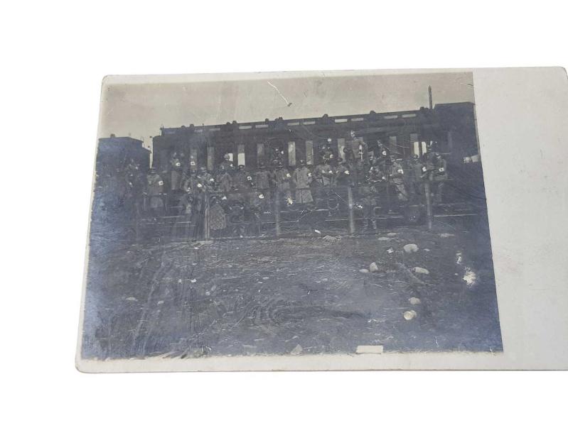 1. DÜNYA SAVAŞI DÖNEMİ SIHHİYE (COMBAT MEDIC) SUBAYLAR TRENLE CEPHELERE GÖNDEERİLİRKEN HATIRA FOTOĞRAF. EBAT: 14 X 9 CM