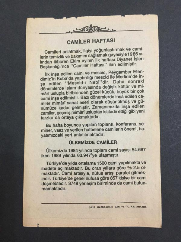 1 EKİM 1991 -TAKVİM YAPRAĞI-DOĞUM GÜNÜ HEDİYESİ-DİYANET TAKVİMİ,ŞAİR NEDİMİN VEFATI 1731,GİNENİN BAĞIMSIZLIĞINA KAVUŞMASI 1958,CAMİLER HAFTASI,ÜLKEMİZDE CAMİLER başlıklı ürün, Efemera, Müzik, Sinema > Belge ve Evraklar > Takvimler kategorisi altında İkinci El olarak satılmaktadır.