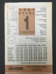 1 EYLÜL 2001-TAKVİM YAPRAĞI-DOĞUM GÜNÜ HEDİYESİ-ÜLKER TAKVİMİ,2.DÜNYA SAVAŞININ BAŞLAMASI 1939,UŞAKIN KURTULUŞU,1922,SEYİTGAZİNİN KURTULUŞU, başlıklı ürün, Efemera, Müzik, Sinema > Belge ve Evraklar > Takvimler kategorisi altında İkinci El olarak satılmaktadır.