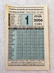 1 EYLÜL 2006-TAKVİM YAPRAĞI-DOĞUM GÜNÜ HEDİYESİ-FAZİLET TAKVİMİ