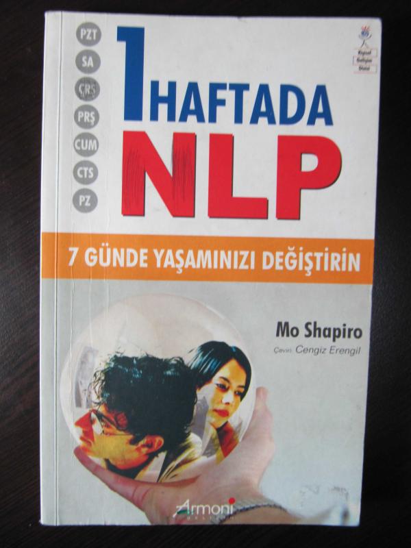 1 HAFTADA NLP 7 GÜNDE YAŞAMINIZI DEĞİŞTİRİN, Mo Shapiro tarafından kaleme alınmıştır. Kitap 2004 yılında ARMONİ YAYINLARI tarafından [İstanbul] yayınlanmıştır. Bu baskının çevirisi Cengiz Erengil tarafından yapılmıştır. 157 sayfadır. 1 HAFTADA NLP 7 GÜNDE YAŞAMINIZI DEĞİŞTİRİN adlı eser Türkçe dilindedir.