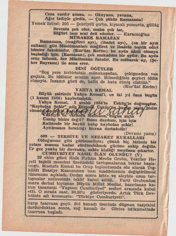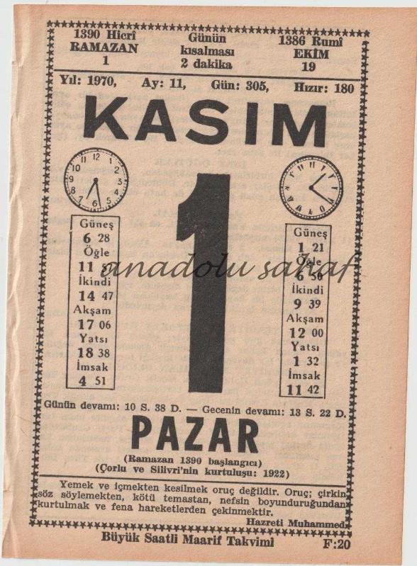 1 Kasım 1970 / Büyük Saatli Maarif Takvimi