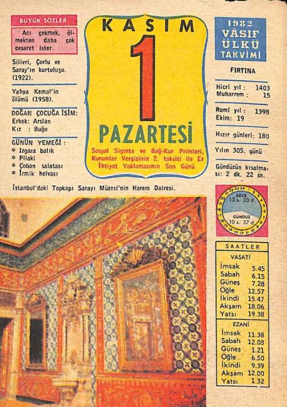 1 Kasım 1982 Takvim Yaprağı - Doğum Günü Hediyesi EFM(N)11869, en son 20 gün önce güncellenmiştir.