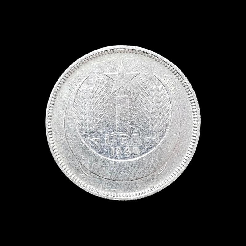 Para : 1 lira Hicri : 1940 Cülus : Ata Lira Dönem : 1923- Miladi : 1940 KM# : 869 Kondisyon : ÇİL Condition : MS-63 Basım Adedi : 253,000 Darphane : Istanbul Maden : Gümüş Çap : 29 Ağırlık (gr.) : 12 Gümüş (gr) : 9.96