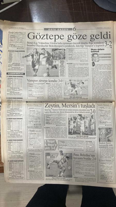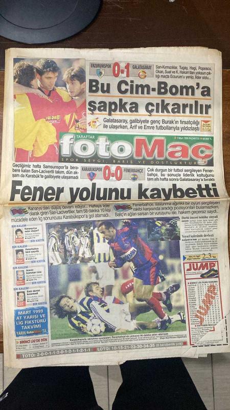 1 MART 1999 - FOTOMAÇ SPOR GAZETESİ - TURKISH NEWSPAPER - DOĞUM GÜNÜ HEDİYESİ - EKSİKSİZ TAM TAKIM GAZETE - GALATASARAY - FARUK SÜREN - FATİH TERİM - HAGİ - TUGAY - OKAN - SUAT - K. HAKAN - ARİF - EMRE - BURAK - FENERBAHÇE - JOACHIM LÖW - SERGEN - BALİÇ - MOLDOVAN - RÜŞTÜ - TRABZONSPOR - MEHMET ALİ YILMAZ - CAMPBELL - ÜNAL - VUGRINEC - GORDON MILNE TARAFTAR - FOTOMAÇ - GALATASARAY EKSİK KADROSUYLA LİDERLİĞİ ALDI - BURAK’IN FIRSATÇILIĞIYLA GALİBİYET - ARİF VE EMRE YILDIZLAŞTI - FENERBAHÇE KARABÜK’TE TAKILDI, LİDERLİĞİ KAPTIRDI - BALİÇ’İN GOLÜ İPTAL EDİLDİ - TRABZONSPOR’DA “TAMAM MI DEVAM MI?” TOPLANTISI - CAMPBELL İSYAN ETTİ - ÜNAL ŞARAP GİBİ - VUGRINEC SAKATLANDI - GORDON MILNE’İN DURUMU BELİRSİZ - SAKARYASPOR KOCAELİ’Yİ YENDİ - MİLLİ TAKIM BASKETBOLDA ÇEKLER’E FARK ATTI ERZURUMSPOR 0-1 GALATASARAY (GOL: BURAK) KARABÜKSPOR 0-0 FENERBAHÇE İSTANBULSPOR 0-0 TRABZONSPOR SAKARYASPOR 1-0 KOCAELİSPOR (NIKOLOV 63. DK) - TARAFTAR - FOTOMAÇ - GALATASARAY EKSİK KADROSUYLA LİDERLİĞİ ALDI - BURA, DİNÇ BİLGİN tarafından kaleme alınmıştır. 1 MART 1999 - FOTOMAÇ SPOR GAZETESİ - TURKISH NEWSPAPER - DOĞUM GÜNÜ HEDİYESİ - EKSİKSİZ TAM TAKIM GAZETE - GALATASARAY - FARUK SÜREN - FATİH TERİM - HAGİ - TUGAY - OKAN - SUAT - K. HAKAN - ARİF - EMRE - BURAK - FENERBAHÇE - JOACHIM LÖW - SERGEN - BALİÇ - MOLDOVAN - RÜŞTÜ - TRABZONSPOR - MEHMET ALİ YILMAZ - CAMPBELL - ÜNAL - VUGRINEC - GORDON MILNE TARAFTAR - FOTOMAÇ - GALATASARAY EKSİK KADROSUYLA LİDERLİĞİ ALDI - BURAK’IN FIRSATÇILIĞIYLA GALİBİYET - ARİF VE EMRE YILDIZLAŞTI - FENERBAHÇE KARABÜK’TE TAKILDI, LİDERLİĞİ KAPTIRDI - BALİÇ’İN GOLÜ İPTAL EDİLDİ - TRABZONSPOR’DA “TAMAM MI DEVAM MI?” TOPLANTISI - CAMPBELL İSYAN ETTİ - ÜNAL ŞARAP GİBİ - VUGRINEC SAKATLANDI - GORDON MILNE’İN DURUMU BELİRSİZ - SAKARYASPOR KOCAELİ’Yİ YENDİ - MİLLİ TAKIM BASKETBOLDA ÇEKLER’E FARK ATTI ERZURUMSPOR 0-1 GALATASARAY (GOL: BURAK) KARABÜKSPOR 0-0 FENERBAHÇE İSTANBULSPOR 0-0 TRABZONSPOR SAKARYASPOR 1-0 KOCAELİSPOR (NIKOLOV 63. DK) - TARAFTAR - FOTOMAÇ - GALATASARAY EKSİK KADROSUYLA LİDERLİĞİ ALDI - BURA adlı eser Türkçe dilindedir.