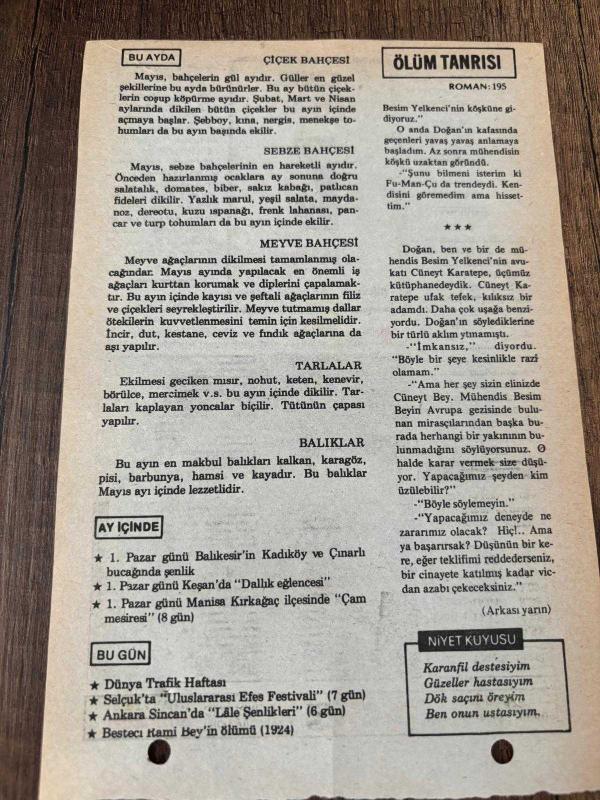 1 MAYIS 1979 - TAKVİM YAPRAĞI - DOĞUM GÜNÜ HEDİYESİ - HÜRRİYET TAKVİMİ - ÖLÜM TANRISI ROMANI - Dünya Trafik Haftası - Selçuk'ta "Uluslararası Efes Festivali" (7 gün) - Ankara Sincan'da "Lâle Şenlikleri" (6 gün) - Bestecı Kami Bey'in ölümü (1924) başlıklı ürün, Efemera, Müzik, Sinema > Belge ve Evraklar > Takvimler kategorisi altında İkinci El olarak satılmaktadır.