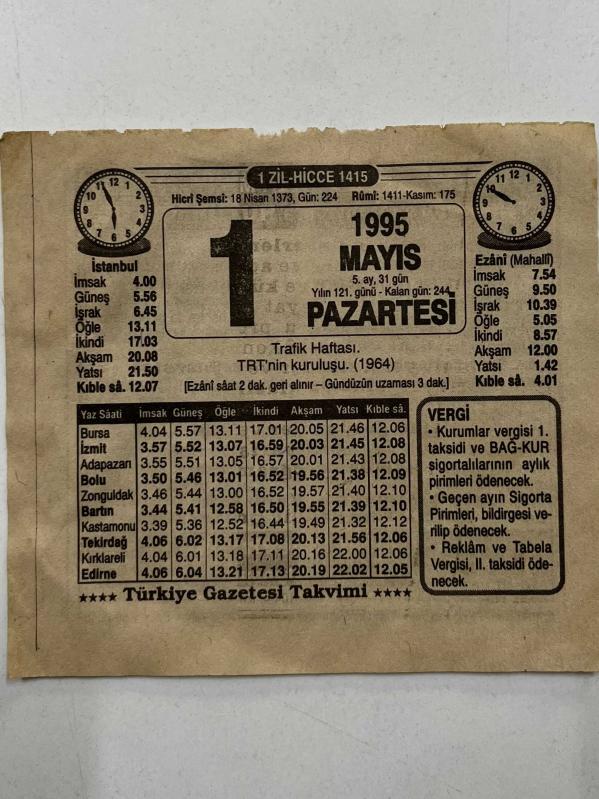1 Mayıs 1995 Takvim Yaprağı, 5 ay önce satışa sunulmuştur.