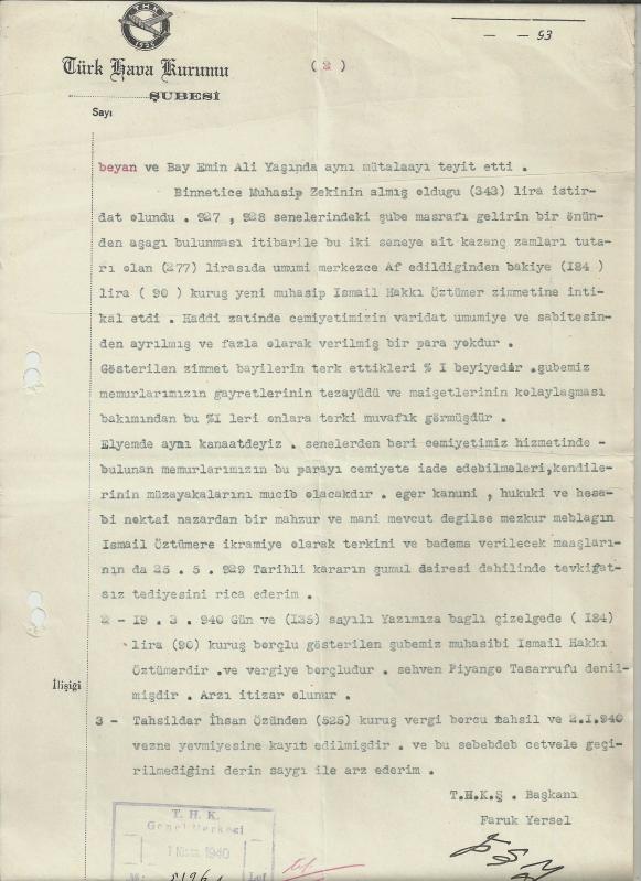 1 NİSAN 1940 TÜRK HAVA KURUMU / T.H.K.Ş. BAŞKANI FARUK YERSEL İMZALI EVRAK..., 1 yıl önce satışa sunulmuştur.