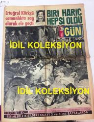 1 NİSAN 1972 GÜN GAZETESİ - Mahir Çayan ve arkadaşları Hüdai Arıkan, Cihan Alptekin, Nihat Yılmaz, Ertan Saruhan, Ahmet Atasoy, Sinan Kazım Özüdoğru, Sabahattin Kurt, Ömer Ayna, Saffet Alp'in Kızıldere'de Öldürüldükleri Olayın Manşeti, Ertuğrul Kürkçü'nün Sağ Kurtulması, Perihan Savaş'ın 15 Yaşındayken Lise 1 Öğrencisi Olduğu Yıllar, Kandilli Kız Lisesi Öğrencisi Neval Erol Evirgen, İmar ve İskan Bakanı Selahattin Babüroğlu, adlı eser Türkçe dilindedir.