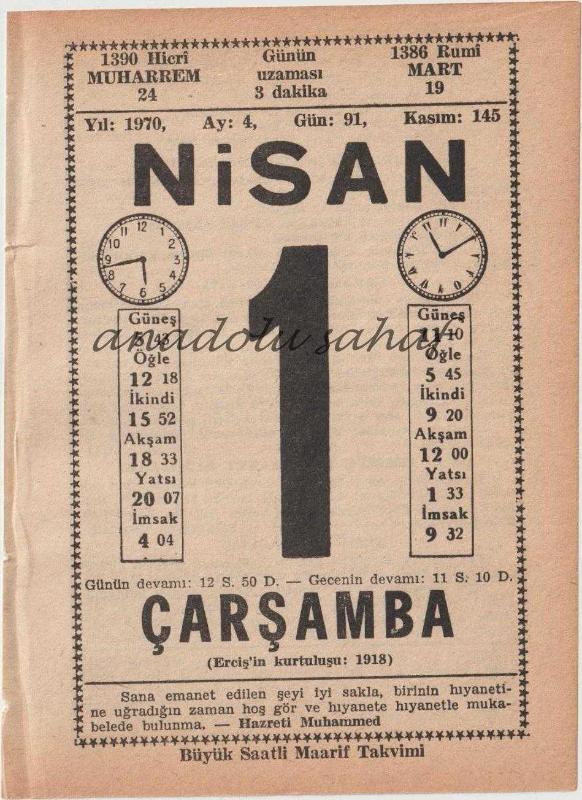 1 Nisan 1970 / Büyük Saatli Maarif Takvimi