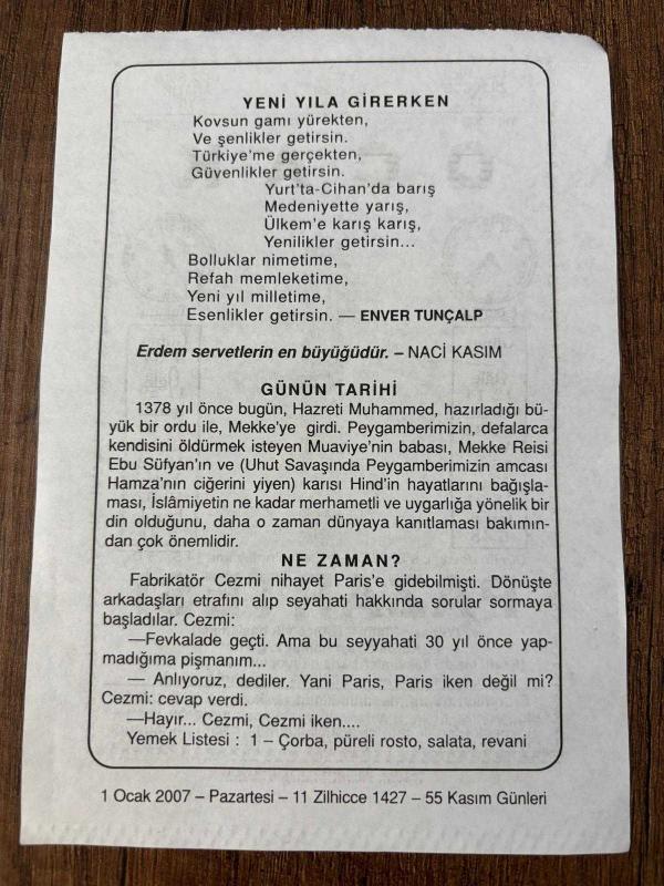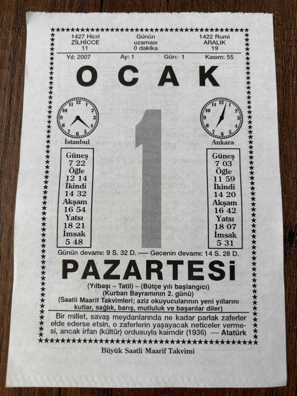 1 OCAK 2007 - TAKVİM YAPRAĞI - DOĞUM GÜNÜ HEDİYESİ - BÜYÜK SAATLİ MAARİF TAKVİMİ - ATATÜRK - ENVER TUNÇALP - NACİ KASIM - HZ. MUHAMMED'İN MEKKEYE GİRİŞİ, en son 8 ay önce güncellenmiştir.