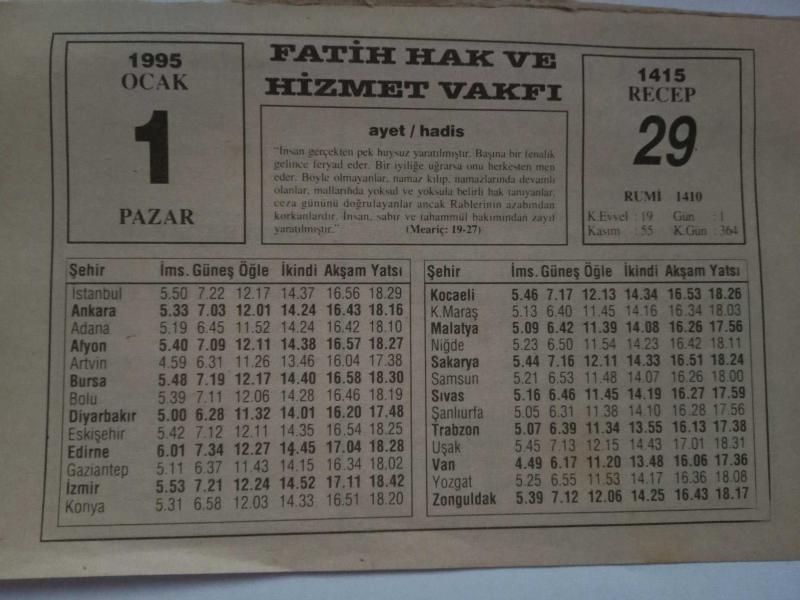 1 Ocak 1995-Orijinal Takvim Yaprağı-Doğum Günü-Söz,Nişan,Nikâh,Düğün ve Önemli Günler Hediyesi-Fatih Hak ve Hizmet Vakfı-ayet/hadis(Meariç:19-27)-Şaban Ayı-Corneille-Saçma Sözler, en son 4 ay önce güncellenmiştir.