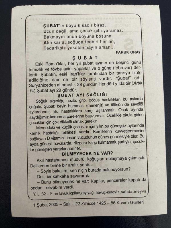 1 ŞUBAT 2005 - TAKVİM YAPRAĞI - DOĞUM GÜNÜ HEDİYESİ - BÜYÜK SAATLİ MAARİF TAKVİMİ - SADİ - FARUK ORAY - ŞUBAT AYI SAĞLIĞI - BİLMEYECEK NE VAR, en son 8 ay önce güncellenmiştir.