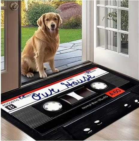 1 Vintage Kaset Tasarımlı Hoş Geldin Paspası, Kaymaz, Emici, Dayanıklı, Kolay Temizlenebilir, Makinede Yıkanabilir İç Mekan Giriş Paspası, Dikdörtgen Ev Ön Veranda Dekoru 40cm X 60cm ebat