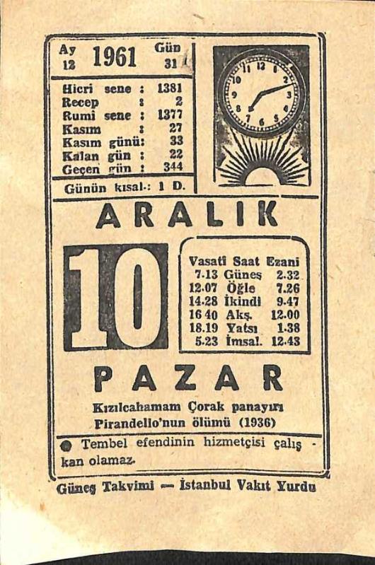 10 Aralık 1961 Takvim Yaprağı - Doğum Günü Hediyesi EFM(N)11245, en son 19 gün önce güncellenmiştir.