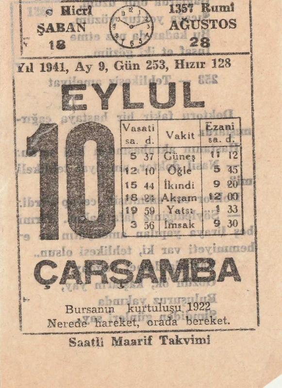 10 EYLÜL 1941 SAATLİ MAARİF TAKVİMİ YAPRAĞI, en son 2 ay önce güncellenmiştir.