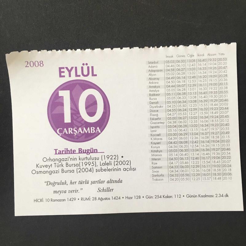 10 EYLÜL 2008-TAKVİM YAPRAĞI-DOĞUM GÜNÜ HEDİYESİ-KUVEYT TÜRK TAKVİMİ,ORHANGAZİNİN KURTULUŞU 1922,RAMAZANIN FAZİLETİ,BİR NASİHAT,RAMAZAN MANİSİ, en son 8 ay önce güncellenmiştir.