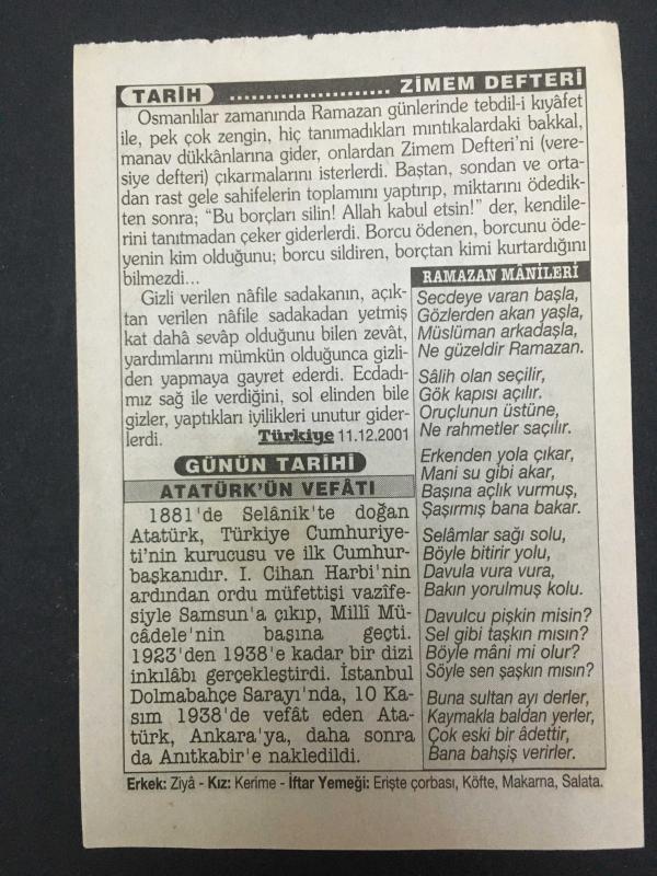 Gazeteler,dergiler,kitaplar harika hediyelerdir.Otantik,orijinal,nadir ve eski gazeteler,dergiler,kitaplar,efemeralar,objeler.Gazeteler bir aynadır.Kitaplar sadece okumak için değil birlikte yaşamak içindir . Kelimeler , notalar ,  sayılar kardeştirler.Kitaplar insanı binbir gözlü yapar.