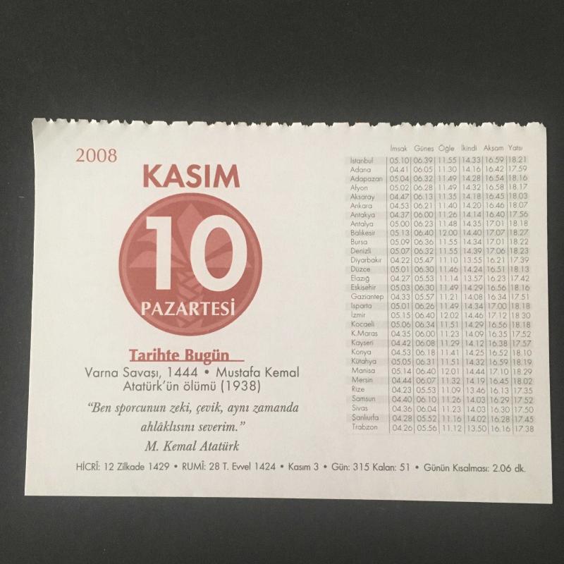 10 KASIM 2008 -TAKVİM YAPRAĞI-DOĞUM GÜNÜ HEDİYESİ-KUVEYT TÜRK TAKVİMİ,VARNA SAVAŞI,1444,ATATÜRKÜN ÖLÜMÜ 1938,MUSTAFA KEMAL ATATÜRK,