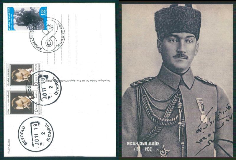 10 KASIM 2019 ATATÜRK Konulu Pul Sergisi Özel Gün Damgası ve 10.11.19 Beyoğlu İstanbul Posta damgası uygulanmış Atatürk Kartpostalı Türkiye Cumhuriyetinin Kurucusu Mustafa Kemal Atatürk (1881- 1938) Yaba Yayın Basım Dağıtım - Yaba Kart - Az bulunur * Yüksek Kaldırımın son kartpostalcısı diyebiliriz. Kartpostallar mükemmekl koleksiyonluk kondüsyondadır.