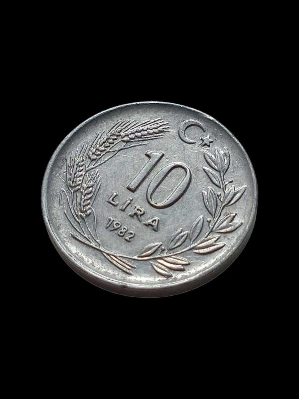 10 Lira 1982 Madeni Koleksiyon Para. Antika Koleksiyon Para. Türk Lirası.