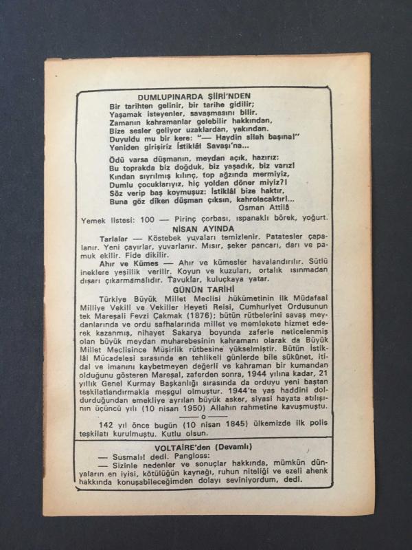 10 NİSAN 1987 -TAKVİM YAPRAĞI-DOĞUM GÜNÜ HEDİYESİ-BÜYÜK SAATLİ MAARİF TAKVİMİ,FEVZİ ÇAKMAKIN FEVATI 1950,TÜRKİYEDE POLİS TEŞKİLATININ KURULDUĞU GÜN 1845,DUMLUPINARDA ŞİİRİNDEN,NİSAN AYINDA,VOLTAİRE DEN, en son 8 ay önce güncellenmiştir.