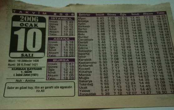 10 Ocak 2006-Orijinal Takvim Yaprağı-Doğum Günü-Söz,Nişan,Nikâh,Düğün ve Önemli Günler Hediyesi-Bizim Anadolu Takvimleri-Ayet-Hadis(Hz.Ali)(Kurban Bayramı 1.Gün)-Nuh-Amine-Kurban Nasıl Kesilir?, en son 2 ay önce güncellenmiştir.