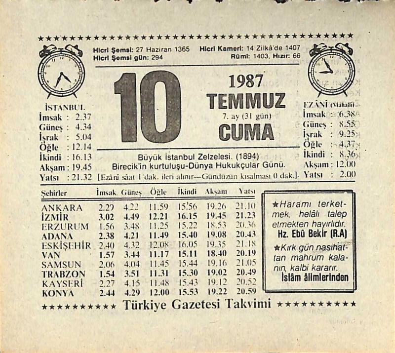 10 Temmuz 1987 Takvim Yaprağı - Doğum Günü Hediyesi EFMN13822, en son 21 gün önce güncellenmiştir.