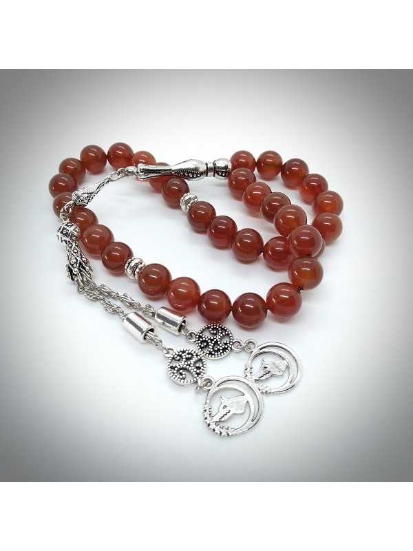 Koleksiyonluk değerde, 33’lük sistemde dizilmiş Hakiki Kırmızı Akik tespih. Habbe ölçüsü tam 10 mm olup elde doygun bir his bırakır. Çift katlı yüksek mukavemetli sert misina üzerine dizildiği için kopmalara karşı ekstra dayanıklıdır. Tekli ve çiftli çekime uygundur. Yaklaşık 65 gr olup 32 cm toplam uzunluğundadır. İmamesi 3 cm dir. Taş Cinsi: Doğal Akik (Agate). Aksam: Özel tasarım metal imame ve çiftli kurt figürlü, Ay Yıldızlı sallantı. Durum: Sıfır, kondisyonu kusursuzdur. ''EŞİME, BABAMA, ARKADAŞIMA VE KENDİME NE ALACAĞIM DİYE DÜŞÜNMEYİN, ÖMÜRLÜK BİR HEDİYE'' Stres atmak, dekoratif amaçlı veya özel bir hediye olarak idealdir. Akik taşının negatif enerjiyi yok eden huzur verici etkisiyle birleşen Türk motifli tasarımıyla kaçırılmayacak bir parça. Ücretsiz ve hızlı kargo yapılır. Aynı gün veya en geç ertesi gün. Hediyelik kutusunda yedek ipi ile özenle paketlenerek gönderilir. Resimdeki kutu stoklara göre farklılık gösterebilir. ÜRÜN BİRE BİR ORJİNAL RESMİNDEKİ GİBİ GÖNDERİLİR. KENDİ TASARIMIMIZDIR. DİĞER İLANLARIMA DA BAKABİLİRSİNİZ.
