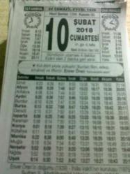 10 şubat 2018 takvim yaprağı (türkiye takvimi)