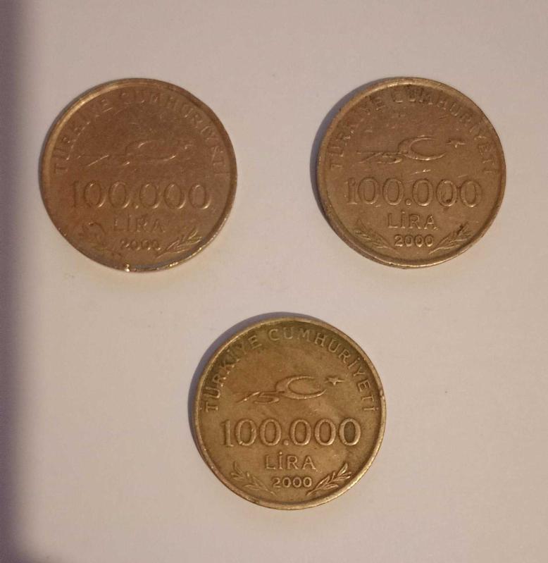 100.000 Lira HAKKINDA BİLGİLER 2000 yılında basılan 100.000 Lira; Türkiye Cumhuriyeti para kataloğu içerisinde bulunan Cumhuriyet (1923) dönemine ait paralardandır. İstanbul darphanesinde 101.439.000 adet basılmıştır. Paranın nadirlik derecesi BULUNABİLİR olarak sınıflandırılmıştır. Para; Bakır madeninden/bileşiminden imal edilmiştir. Bu paralar ortalama 7.5 gram ağırlığa ve 25 milimetre genişliğe sahiptir.