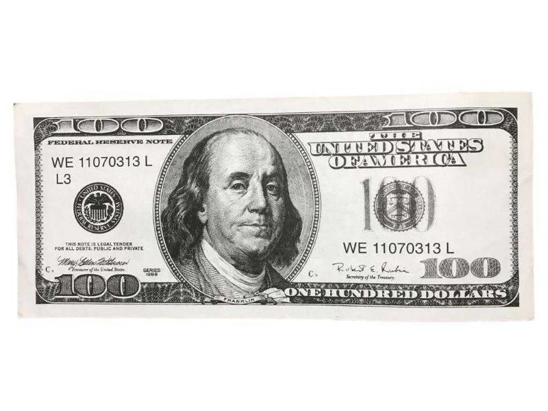 100 Dolar / Jumbo boy 10x23.5 cm - Şaka ve reklam paraları, 2 yıl önce satışa sunulmuştur.