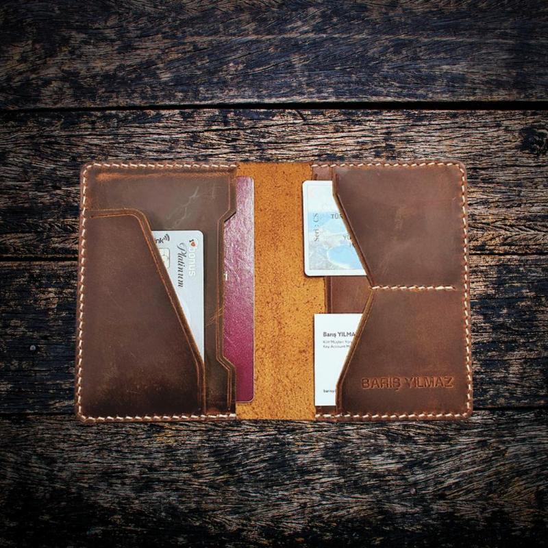 %100 dana derisinden %100 el işçiliği ile üretilmiştir. Görseldeki ürün, "PRAG" modeli olup 2 adet kart gözü ve 2 pasaport gözü bulunmaktadır. Ayrıca bir tane de hızlı ulaşım gözü vardır. Oraya da biletinizi koyabilirsiniz. Siparişiniz tamamen el işçiliği ile yapıldığı için 3-4 gün arasında teslim edilmektedir. Not: İç kısmın sağ alt köşesine isminiz yazılıp, kişiselleştirme yapılabilmektedir.