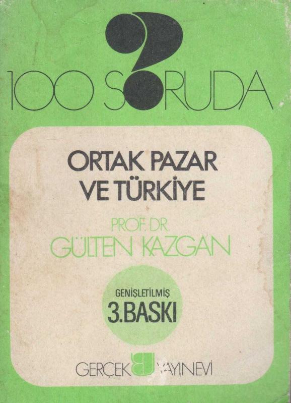 100 Soruda Ortak Pazar ve Türkiye - 1975 Yılı 3. Baskısı, Prof. Dr. Gülten Kazgan tarafından kaleme alınmıştır. Kitap 1975 yılında Gerçek tarafından [İstanbul] yayınlanmıştır. Satışta olan kitap, yayınevinin 3. baskısıdır. 352 sayfadır. Sayfa bilgisi Avrupa Enzo Kağıt olarak belirtilmiştir. 100 Soruda Ortak Pazar ve Türkiye - 1975 Yılı 3. Baskısı adlı eser Türkçe dilindedir.