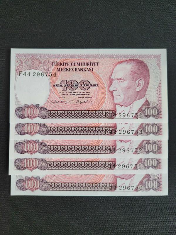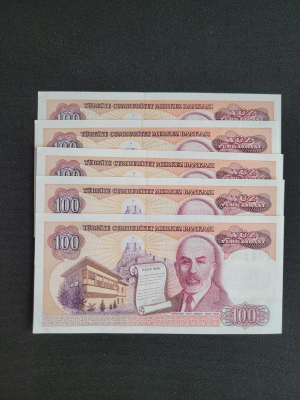 100 TL, 7.Emisyon, Çil 5 adet Seri Takipli başlıklı ürün, Efemera, Müzik, Sinema > Nümismatik, Para, Madalya > Kağıt Paralar > Cumhuriyet Dönemi > 7. Emisyon kategorisi altında İkinci El olarak satılmaktadır.