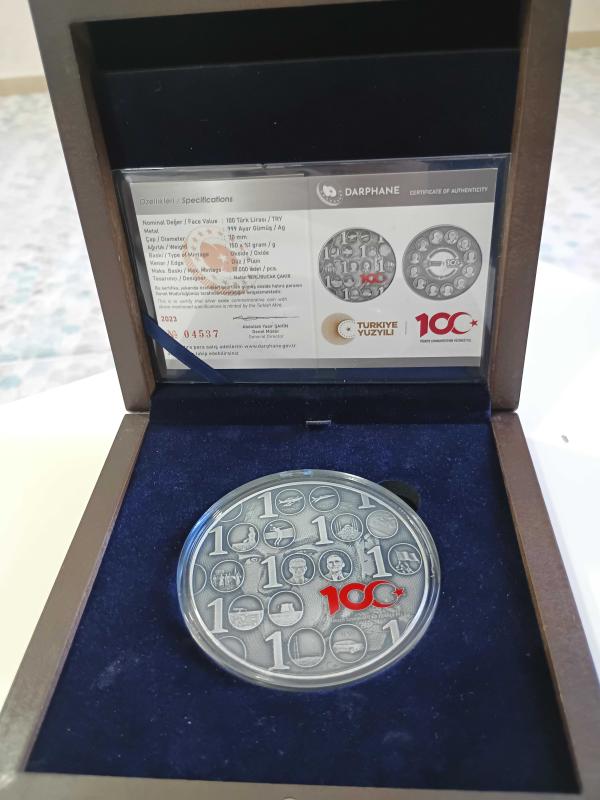 100. Yıl okside gümüş hatıra parasi.. 999 ayar 150 gram gümüş kutulu sertifikalı