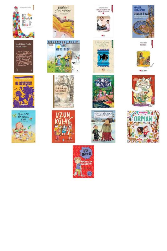 101 Atasözü 101 Öykü - Bitlerimi Geri Verin! - Büyük Atatürk’ten Küçük Öyküler - 2 - Devlet-i Aliyye - IV: Osmanlı İmparatorluğu Üzerine Araştırmalar IV Ayanlar, Tanzimat, Meşrutiyet - Everest Açıkhava 35 - Seçme Şiirler - Eğlenceli Bilim – Mevsimler - Küçük Kara Balık - Matilda: 9+ Yaş - Oz Büyücüsü (Kısaltılmış Metin): İş Çocuk Klasikleri - Pal Sokağı Çocukları - Sihirli Ağaç Evi - Çizgi Roman 6 - Amazon Macerası - Sihirli Hayvanlar Okulu - Opera Biletlerinin Gizemi - Ters Olan Bir Şeyler Var!: Eğlenceli Ara-Bul Kitabı - Uzun Kulak - Yavru Ahtapot Olmak Çok Zor (Karton Kapak) - Çevremizdeki Dünya - Orman - İşte Mert! Mert’in Cesareti - Kendini Korumak