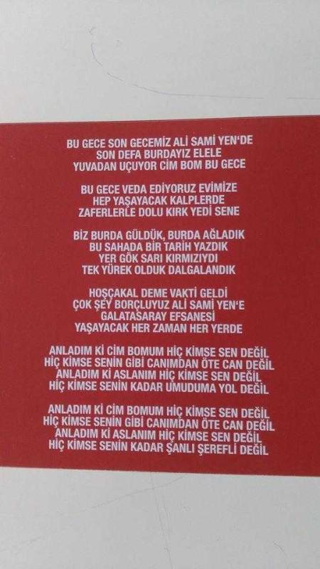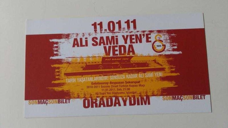 ** ALİ SAMİ YEN'E VEDA MAÇ BİLETİ ** 11 Ocak 2011 tarihli,gayet temiz durumda, 20 x 11 cm.ebadında,"son maç son bilet" sloganlı nostalji.. Arka yüzünde şiiri mevcut.. Çil durumdadır... Kulübün bastırdığı orijinal bilettir,kopya değildir...