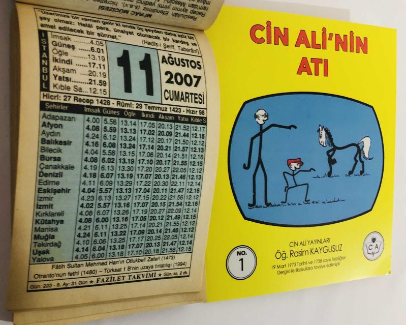 11 Ağustos 2007 hediyelik orijinal Fazilet takvim yaprağı (Cin Ali kitabı hediyeli:), 3 yıl önce satışa sunulmuştur.