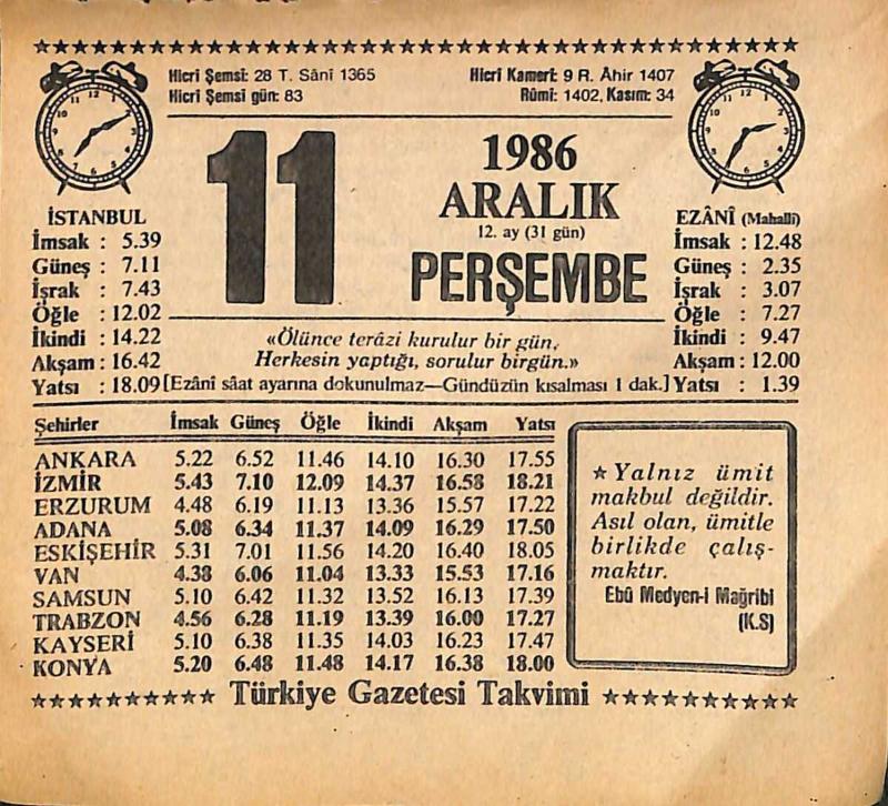 11 Aralık 1986 Takvim Yaprağı - Doğum Günü Hediyesi EFMN14862, en son 22 gün önce güncellenmiştir.
