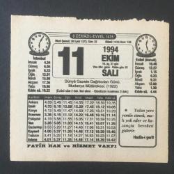 11 EKİM 1994 -TAKVİM YAPRAĞI-DOĞUM GÜNÜ HEDİYESİ-FATİH HAK VE HİZMET VAKFI TAKVİMİ,DÜNYA GEZETE DAĞITICILARI GÜNÜ,MUDANYA MÜTAREKESİ 1922,, en son 8 ay önce güncellenmiştir.