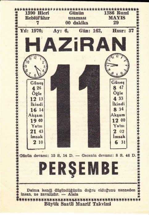 11 HAZİRAN 1970 SAATLİ MAARİF TAKVİMİ YAPRAĞI, en son 1 yıl önce güncellenmiştir.