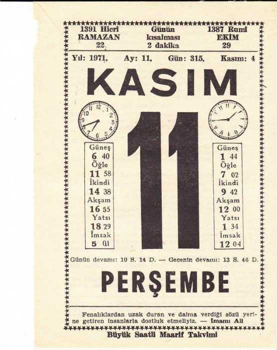 11 KASIM 1971 SAATLİ MAARİF TAKVİMİ YAPRAĞI, en son 1 yıl önce güncellenmiştir.