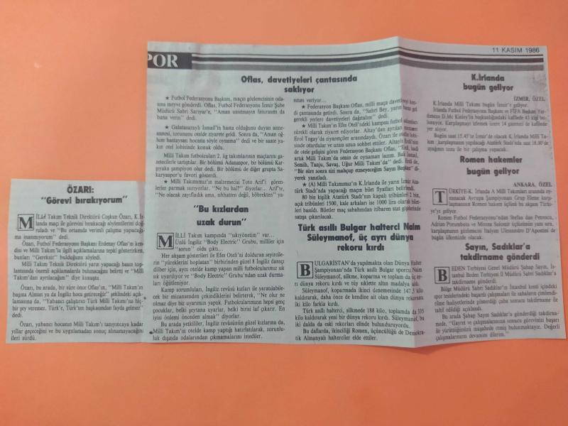 Kitap 1986 yılında yayınlanmıştır. 11 Kasım 1986 - Hürriyet Gazetesi - Coşkun Özarı: ''Görevi bırakıyorum'' - ''Bu kızlardan uzak durun'' - Türk asıllı Bulgar halterci Naim Süleymanof, üç ayrı dünya rekoru kırdı - Romen hakemler bugün geliyor - Oflas, davetiyeleri çantasında saklıyor Gazete tam değil kupürüdür - 25x14cm ebatındadır.. adlı eser Türkçe dilindedir.