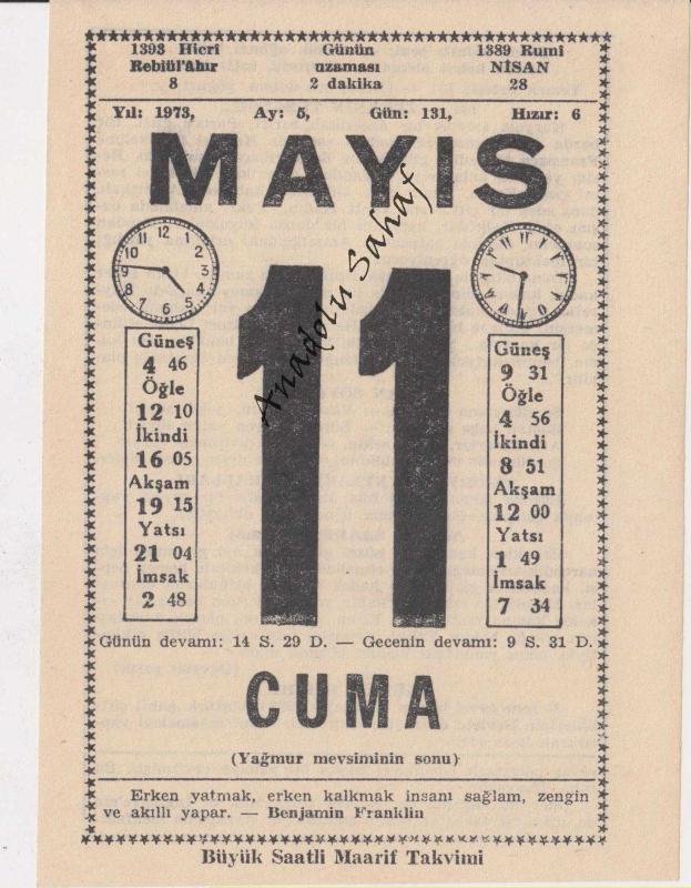 11 Mayıs 1973 /Büyük Saatli Maarif Takvimi, 4 gün önce satışa sunulmuştur.